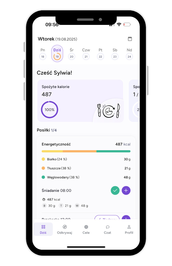 Dzięki aplikacji, którą Ci oferuję, nie musisz trzymać się sztywnego planu żywieniowego! Możesz wymieniać posiłki, modyfikować produkty i nadal trzymać się założeń kalorycznych.