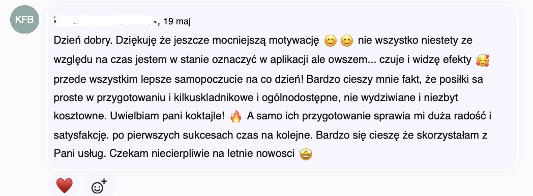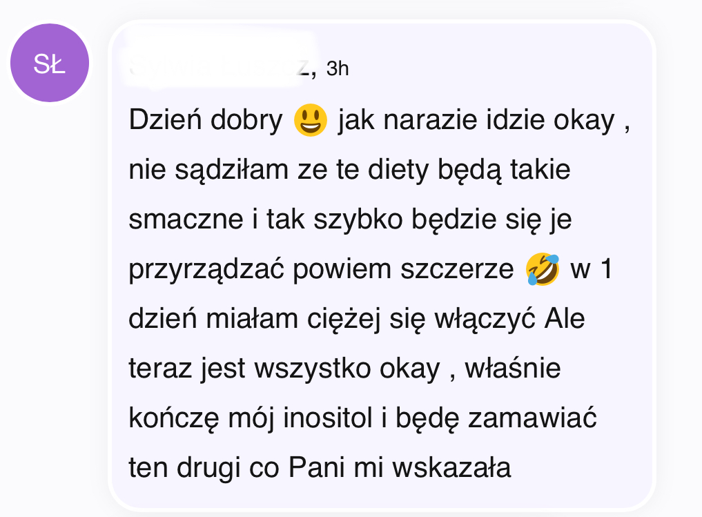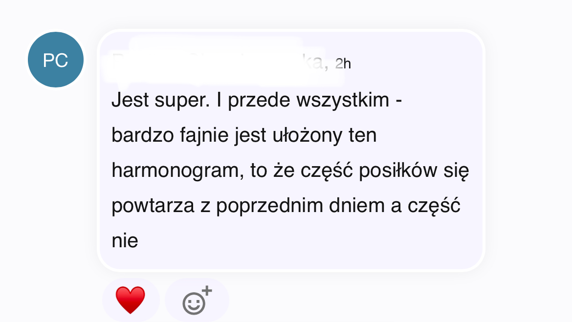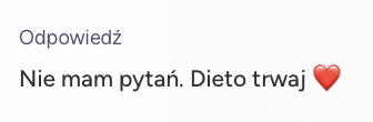 Odpowiadam ja, dietetyk (nie automat), ale forma kontaktu ma na celu wspieranie Cię w codziennym korzystaniu z planu, a nie zastępowanie pełnej konsultacji.