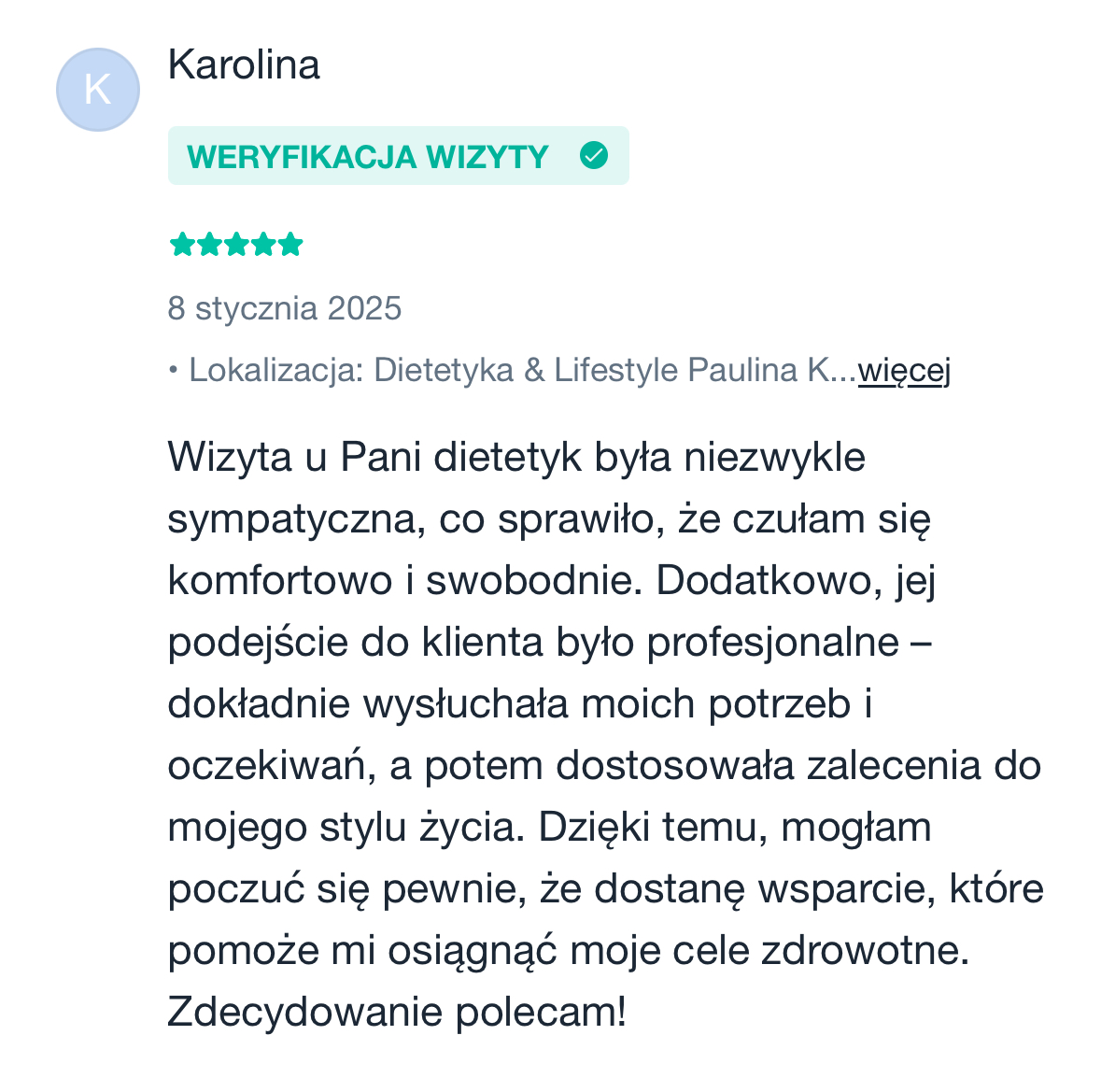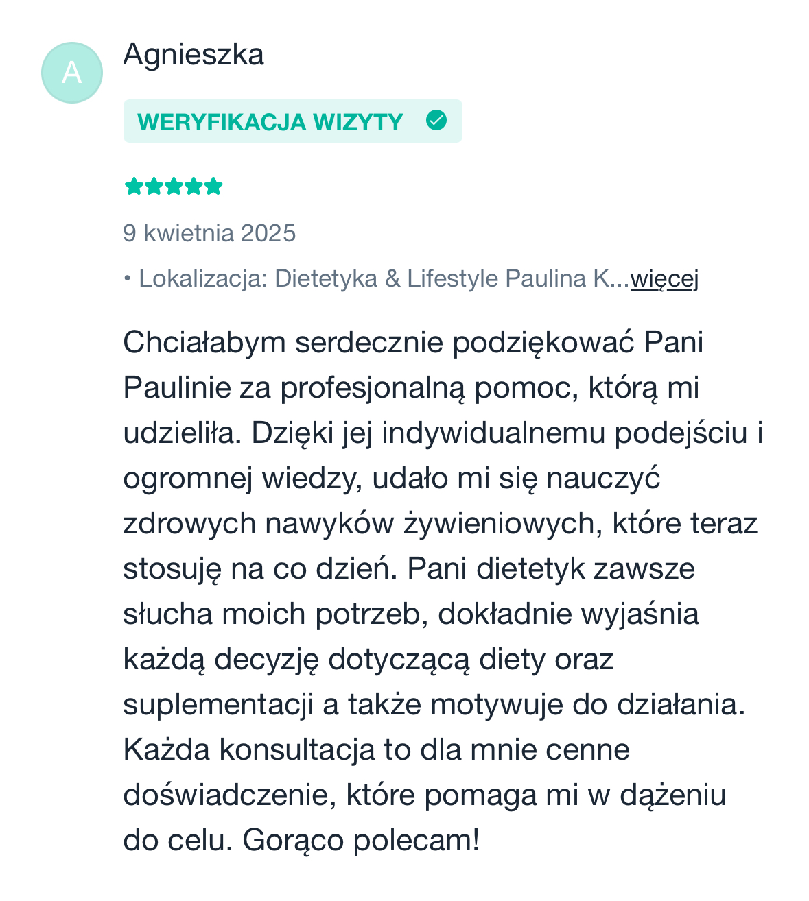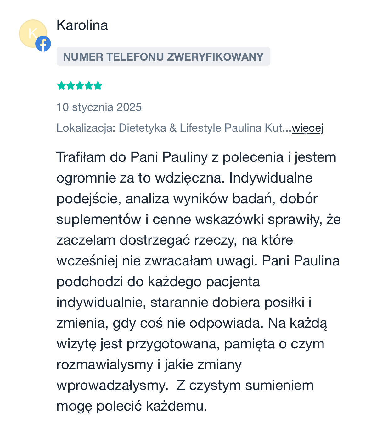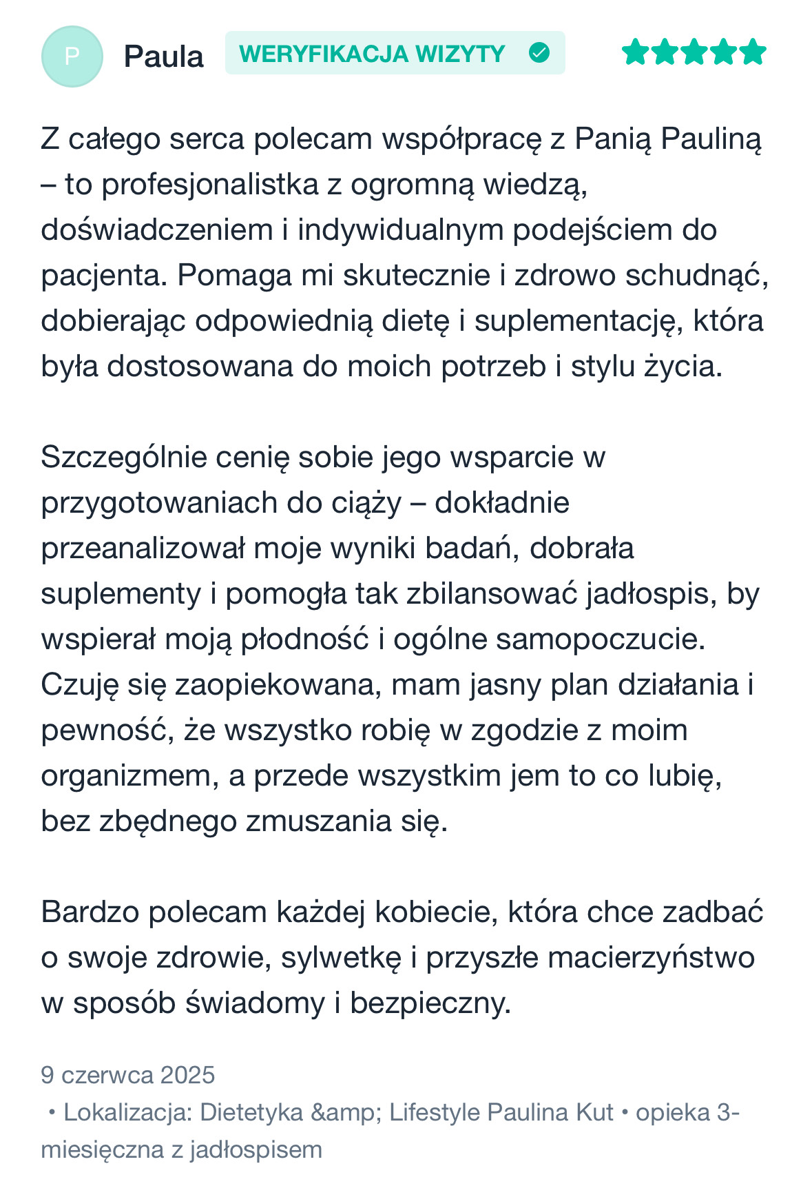 Współpracę zawsze rozpoczynam od konsultacji wstępnej. To pierwsze spotkanie pozwala mi dokładnie poznać Twoje potrzeby, wyniki badań i sytuację zdrowotną, dzięki czemu mogę zaproponować odpowiedni plan działania. Dłuższą współpracę (miesięczną lub trzymiesięczną) możesz podjąć dopiero po tej pierwszej konsultacji.